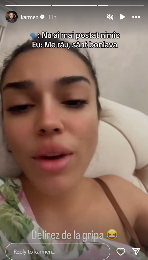 Karmen i-a amuzat pe urmăritorii ei din mediul online, după ce s-a filmat într-un mod amuzant și a postat imaginile pe internet. La final, după ce a recunoscut că nu se simte bine din cauza răcelii, solista a ținut să spună că: „Delirez de la gripă”.