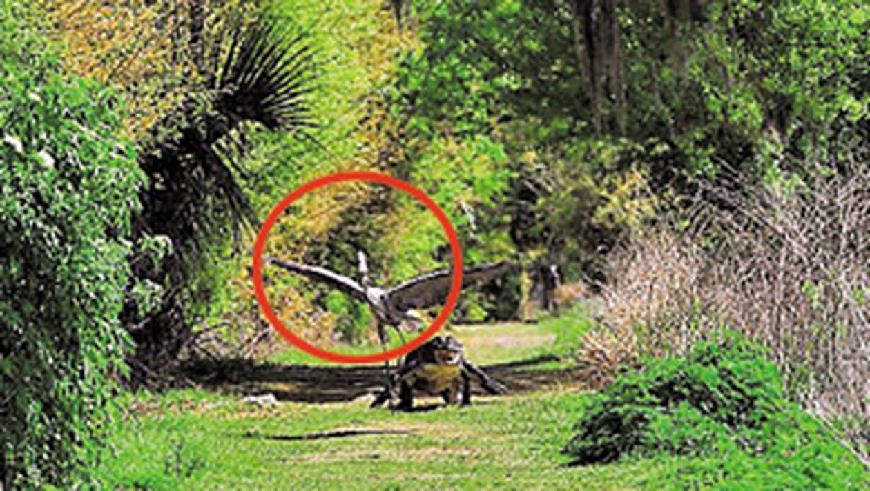 O femela aligator a pornit intr-o cursa nebuneasca pe urmele unui starc care ii furase puiul din cuib. Speriata de reactia agresiva a crocodilului, pasarea a scapat prada din cioc.