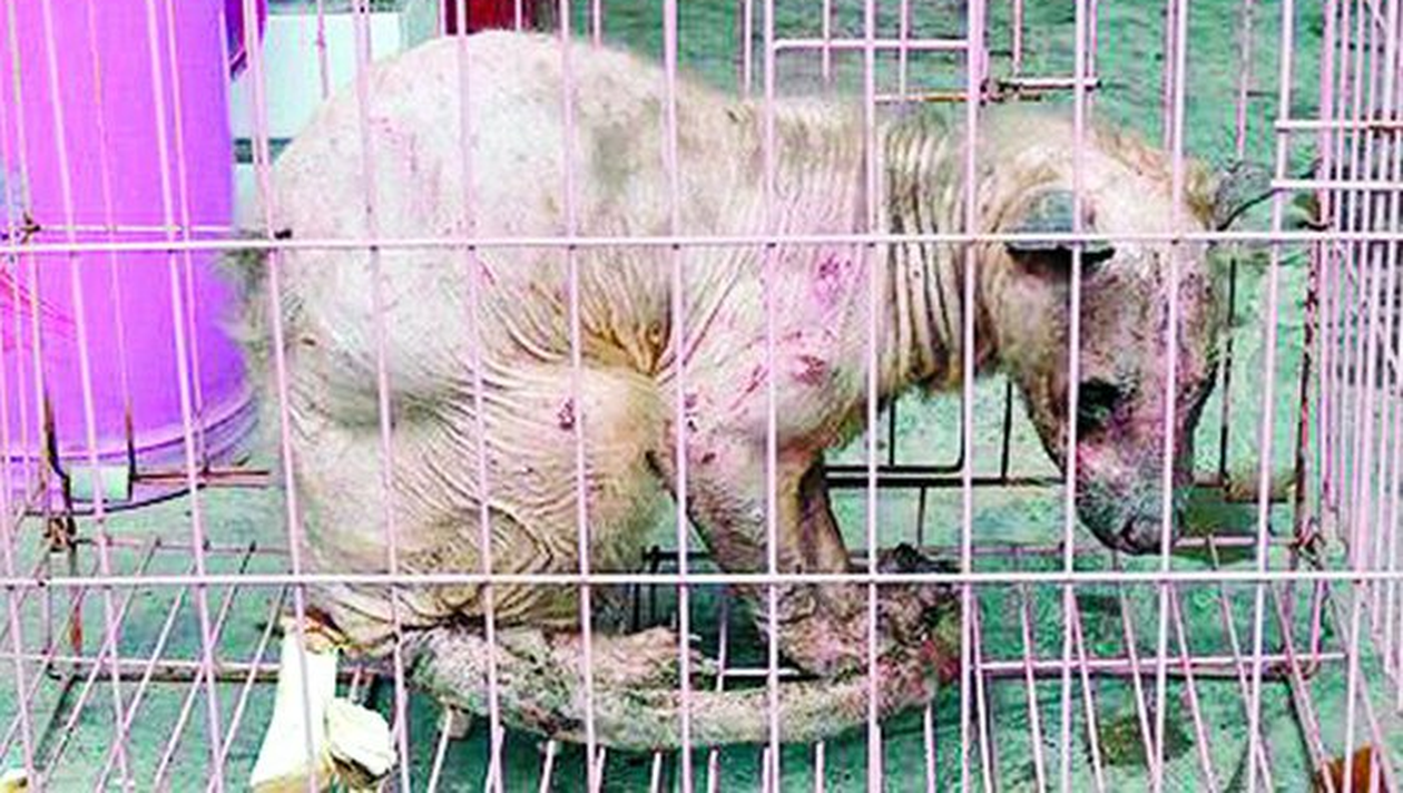 Cativa vanatori din provincia Sichuan au capturat un animal bizar care seamana cu un urs corcit cu un cangur si care miauna.