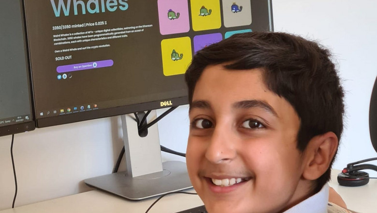 Benyamin Ahmed, un băiețel de 12 ani din Londra, a reușit să facă aproape 30.000 de lire sterline din propria muncă. În timpul vacanței de vară, acesta a creat o serie de NFT-uri cu balene pixelate, care au fost imediat cumpărate.