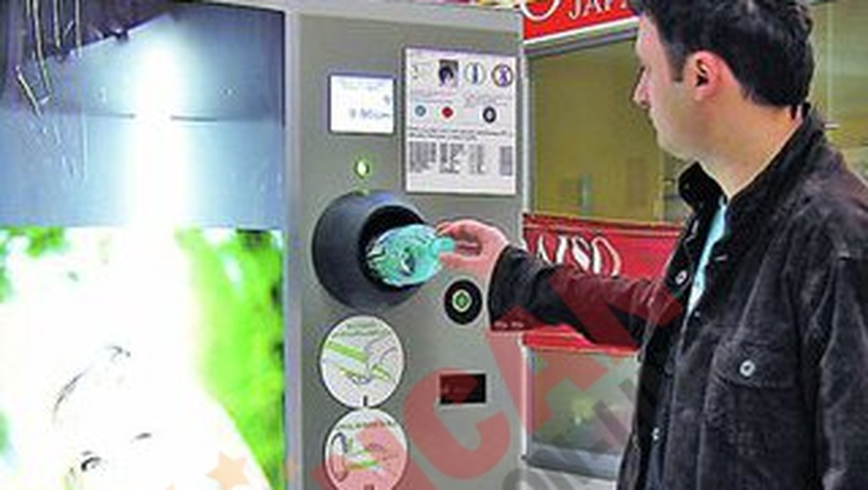 Un supermarket din Pitesti a instalat la intrare un aparat de reciclat sticle de plastic. In premiera pe tara, masinaria "mananca" PET-ul si da la schimb bani. Nu multi, dar de ajuns cat sa-i convinga pe oameni sa nu mai arunce sticlele.