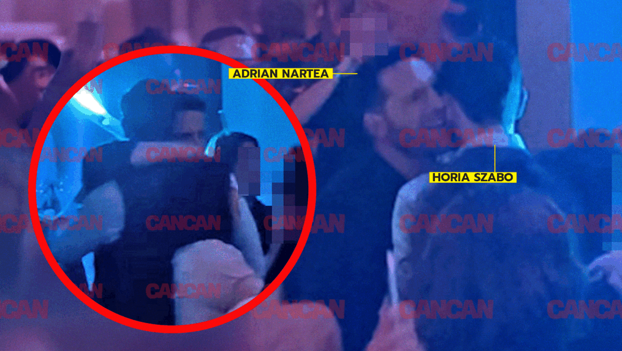 În imagini se vede clar cum cei doi bărbați se îmbrățișează și îți spun niște vorbe la ureche. Oare Adrian Nartea i-o fi spus ceva despre bruneta cu care a avut o mică șuetă în aceeași seară? Nu e exclus.