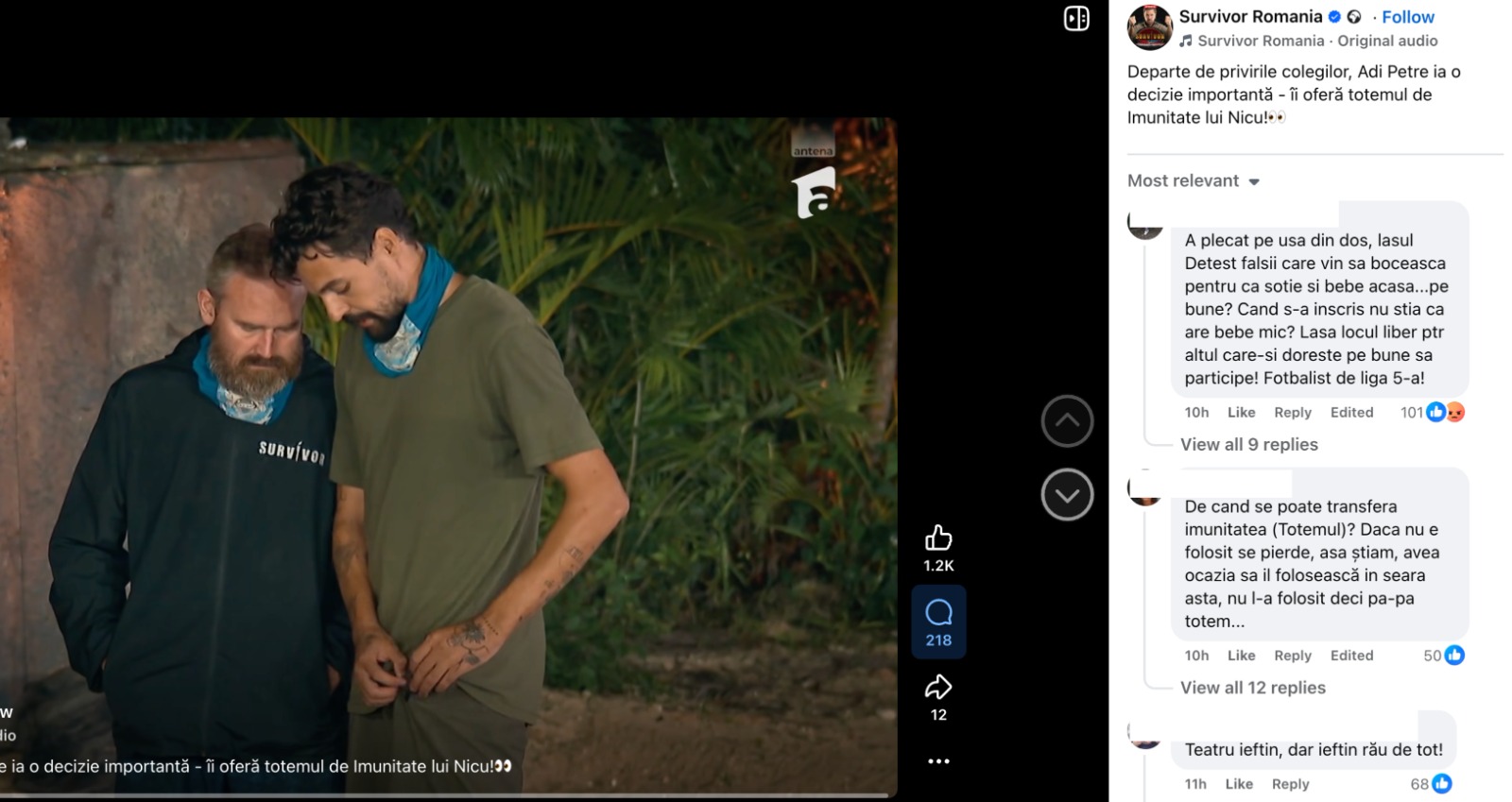 La mai puţin de 24 de ore de la difuzarea ediţiei, controversa din jurul lui Adi Petre continuă să se amplifice, iar reacțiile publicului de pe pagina oficială Survivor România au devenit tot mai dure.