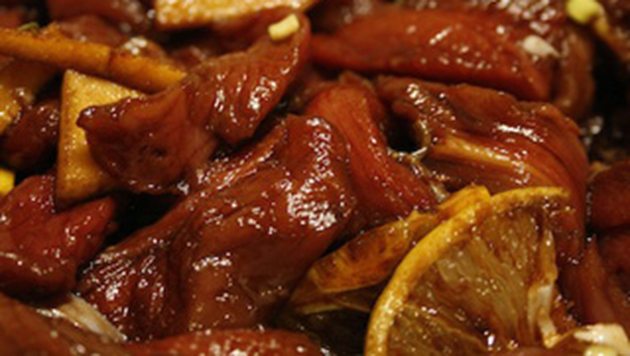 Am taiat carnea in fasii subtiri, am asezat-o intr-un bol dupa care am adaugat: usturoi, ceapa verde, bucati de gutuie sau mar, portocala, lamaie, ghimbir, otet balsamic (o lingura), sos de soia si putin ulei de masline. Am lasat compozitia la macerat cateva ore dupa care am pregatit-o pentru plita. Am incins tigaia si am asezat in ea intreaga compozitie. In cateva minute este gata si numai buna de servit”, a scris Laura Cosoi pe blogul personal.