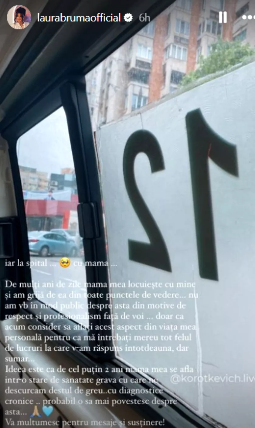 „Ideea este că de cel puțin doi ani mama mea se află într-o stare de sănătate gravă cu care ne descurcăm destul de greu, cu diagnostice cronice. Probabil o să mai povestesc despre asta”, a mai precizat Laura Vass.