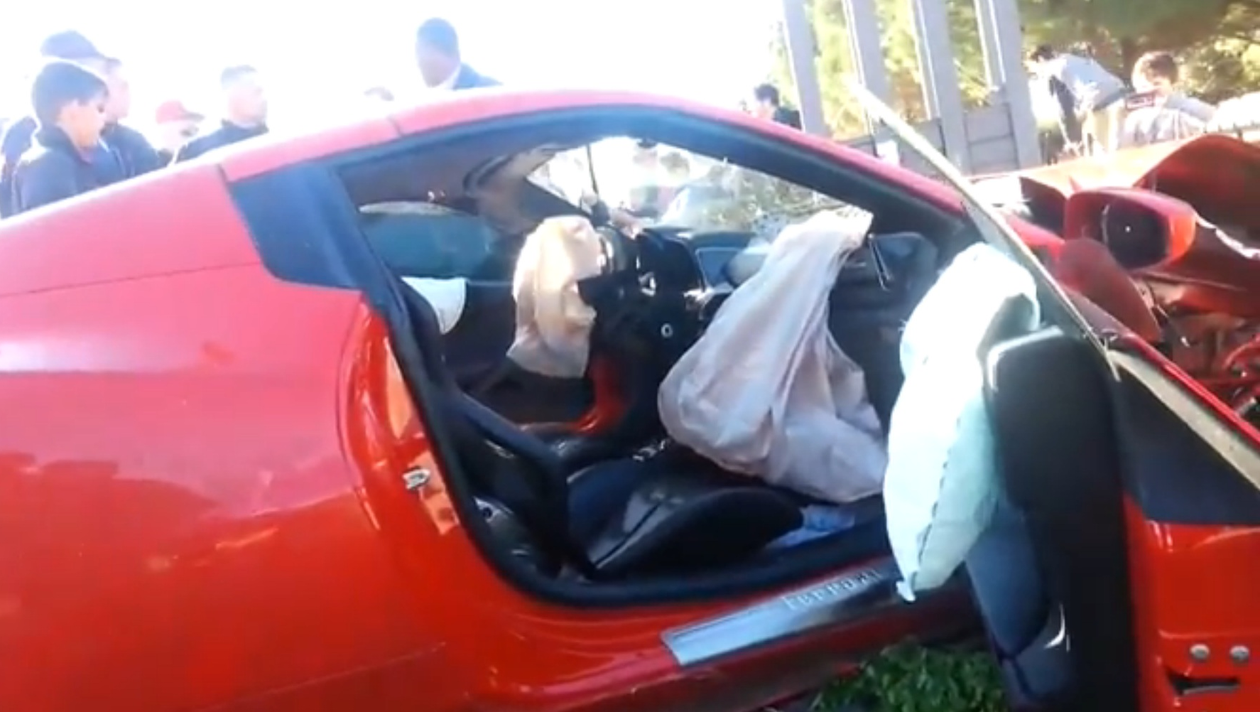 In filmare se poate vedea Ferrariul de 250.000 de euro al lui Niang, care va avea nevoie de reparatii serioase.