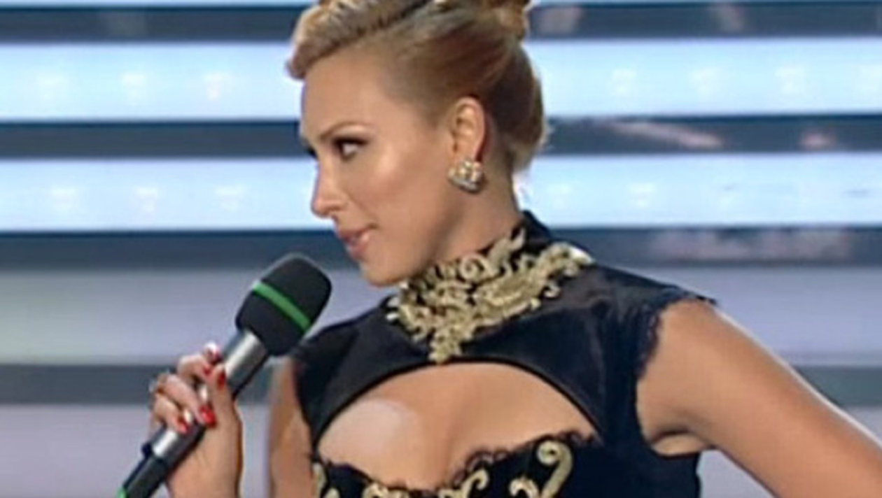 Iulia Vantur a purtat o rochie spectaculoasa la editia de vineri seara a show-ului "Dansez pentru tine". Tinuta prezentatoarei a fost neagra, cu broderie aurie si cantarea patru kilograme.