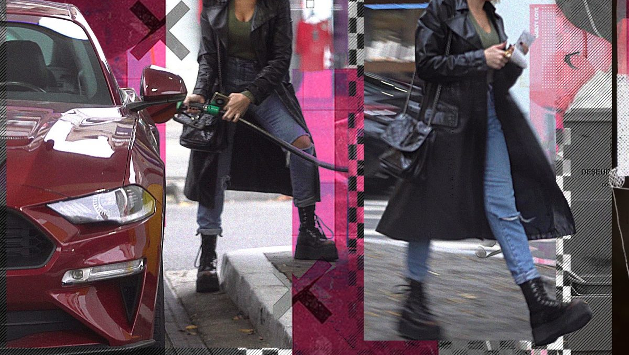 Îmbrăcată într-o pereche de jeans, bocanci și un trench din piele, artista nu a părut să iasă prea mult în evidență! A alimentat fără să fie întreruptă de vreun fan, a plătit apoi suma aferentă bonului fiscal și și-a văzut liniștită de drum.