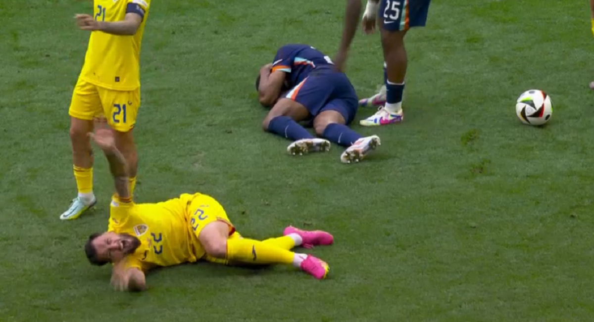 Update min. 33: Accidentare serioasă a lui Vasile Mogoș! Tricolorul s-a ciocnit violent cu Denzel Dumfries și amândoi au avut nevoie de îngrijiri medicale. Din păcate, jucătorul român nu a mai putut continua partida. A rămas pe margine și a fost luat cu targa, iar Edi Iordănescu l-a schimbat imediat cu Bogdan Racovițan.
