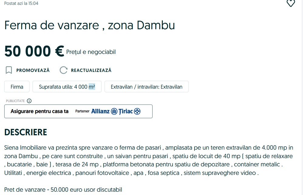 Pentru cei care caută o investiție sigură, o relocare la țară sau un proiect agricol la început de drum, această fermă reprezintă o oportunitate rară.