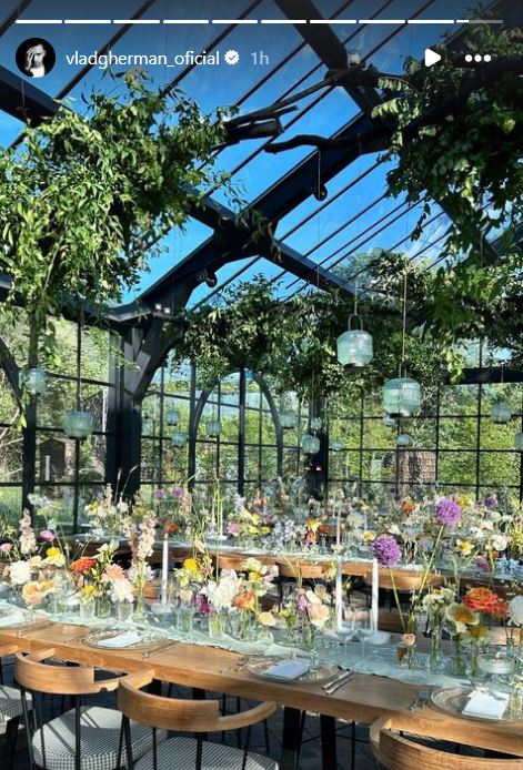 Pe rețelele de socializare, Vlad Gherman și Oana Moșneagu au încărcat imagini din locație. Se pot observa o multitudine de elemente florale, un spațiu aerisit și luminat. Nașii celor doi sunt Anca Sigartău și Dragoș Pandele.