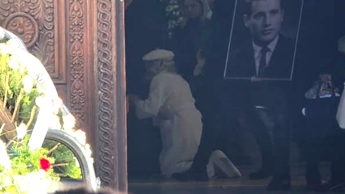 Îngenunchiată de durere, la propriu, artista nu și-a putut stăpâni lacrimile și a avut un moment extrem de vulnerabil la căpătâiul tatălui său.