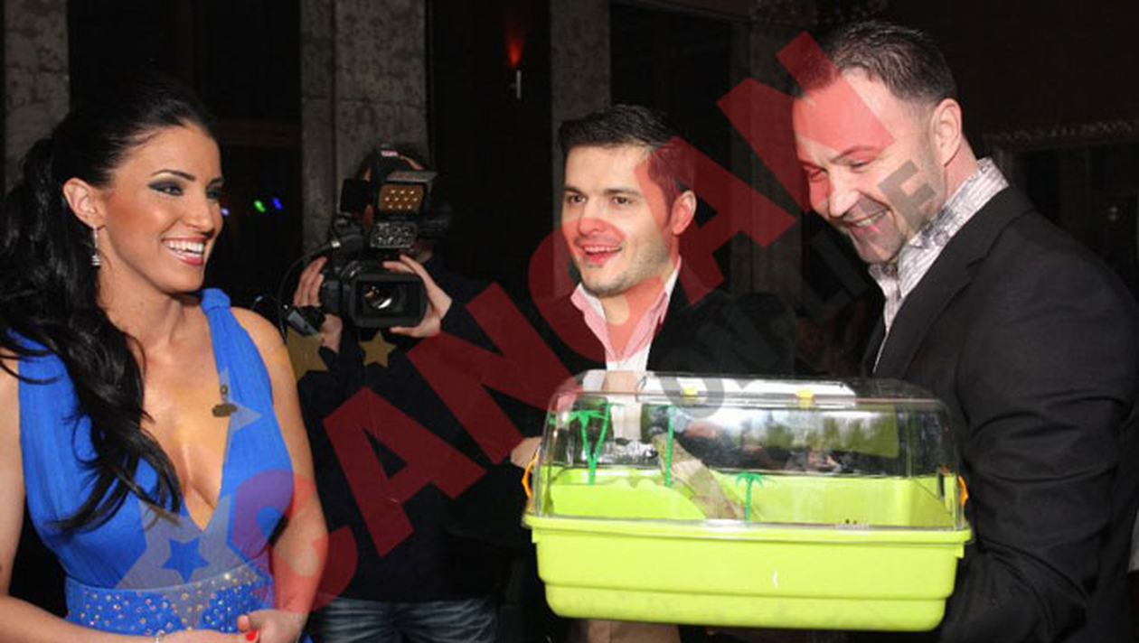 Invitatul surpriza a fost Adelina Pestritu, fosta sotie a actorului, care i-a adus cadou o iguana, ca apropo la relatia lui Varciu cu tanara a carei porecla este numele acestei reptile.