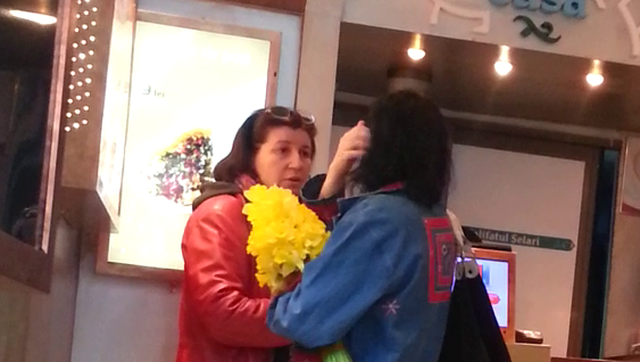 Aromele din local par s-o fi cucerit, insa, pe Magda, asa ca, la finalul intalnirii, actrita si-a luat o saorma la pachet.