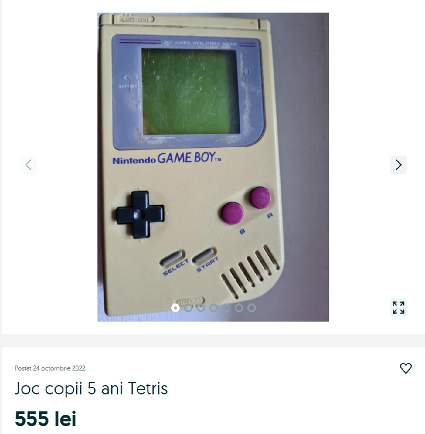 Persoana în cauză avertizează faptul că jocul Tetris este recomandat în special copiilor de peste 5 ani. Dispozitivul se află în perfectă stare de funcționare, potrivit anunțului, iar posesorul este dispus să ofere mai multe fotografii, drept dovadă, doritorilor.