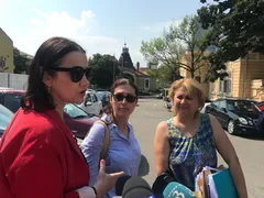 Ramona Săcărin (centru) a venit însoțită de trei avocate la procesul de la Curtea de Apel Craiova