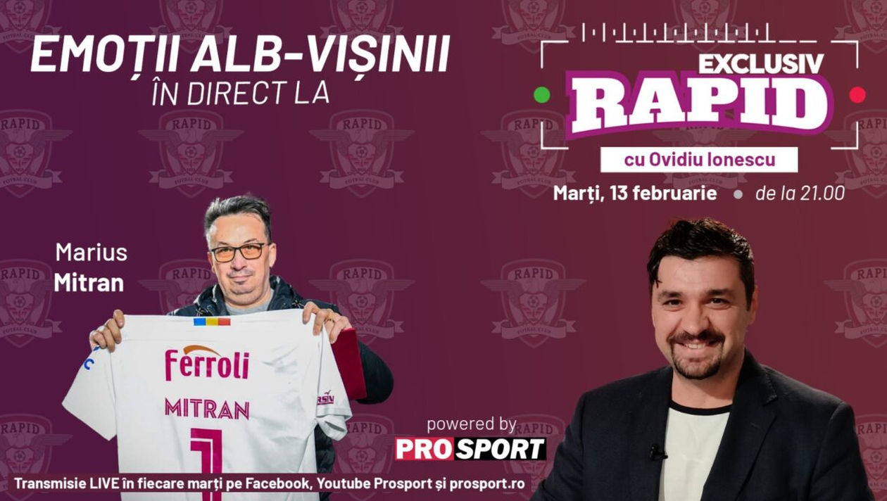 Marius Mitran vine astăzi la „EXCLUSIV RAPID” și avem multe alte subiecte de abordat cu reputatul jurnalist, atât de apreciat în Giulești. Vă asteptam la „EXCLUSIV RAPID” în această seară de la ora 21.00, pe Facebook și YouTube – ProSport, dar și pe prosport.ro
