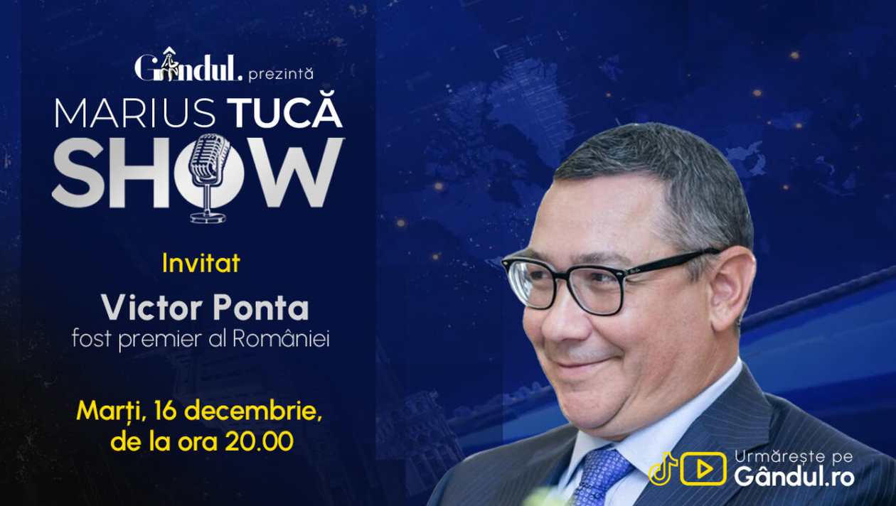 Marius Tucă Show începe marți, 16 decembrie, de la ora 20.00, live pe Gândul. Invitat: Victor Ponta