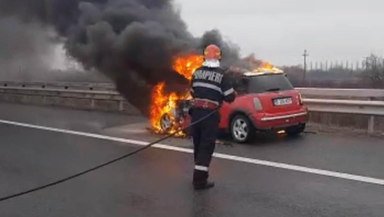 Un autoturism a luat foc în mers, marți, pe autostrada A3, în județul Prahova. Șoferul a observat că iese fum de sub capotă și a tras repede pe banda de urgență. Imediat ce a ieșit din autoturism, mașina s-a transformat într-o torță pe roți. (VEZI ȘI: ACCIDENT VIOLENT PE DN 72, ÎN PRAHOVA. UN MICROBUZ CU 16 OAMENI ȘI UN TIR S-AU CIOCNIT)