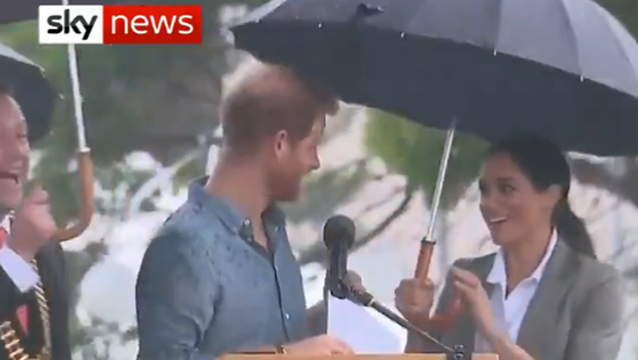 Mai târziu, Harry şi Meghan au trebuit să facă față unei ploi torenţiale, care s-a pornit chiar înainte de un discurs al prinţului. Detaliul care le-a atras atenția australienilor a fost momentul în care Meghan a decis să-i țină umbrela soțului ei, atâta timp cât se adresează mulțimii într-un discurs.