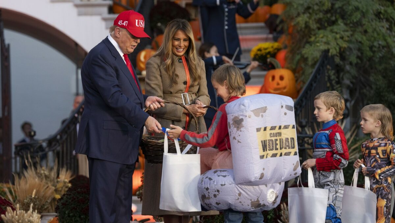 Deși nu au purtat costume tematice, președintele american și Prima Doamnă i-au așteptat cu căldură pe copiii care le-au călcat pragul la Casa Albă. Unele momente au ajuns virale în mediul online, printre ele și cel în care Trump a pus un baton de ciocolată pe capul unui copil îmbrăcat ca DJ-ul american Marshmello!