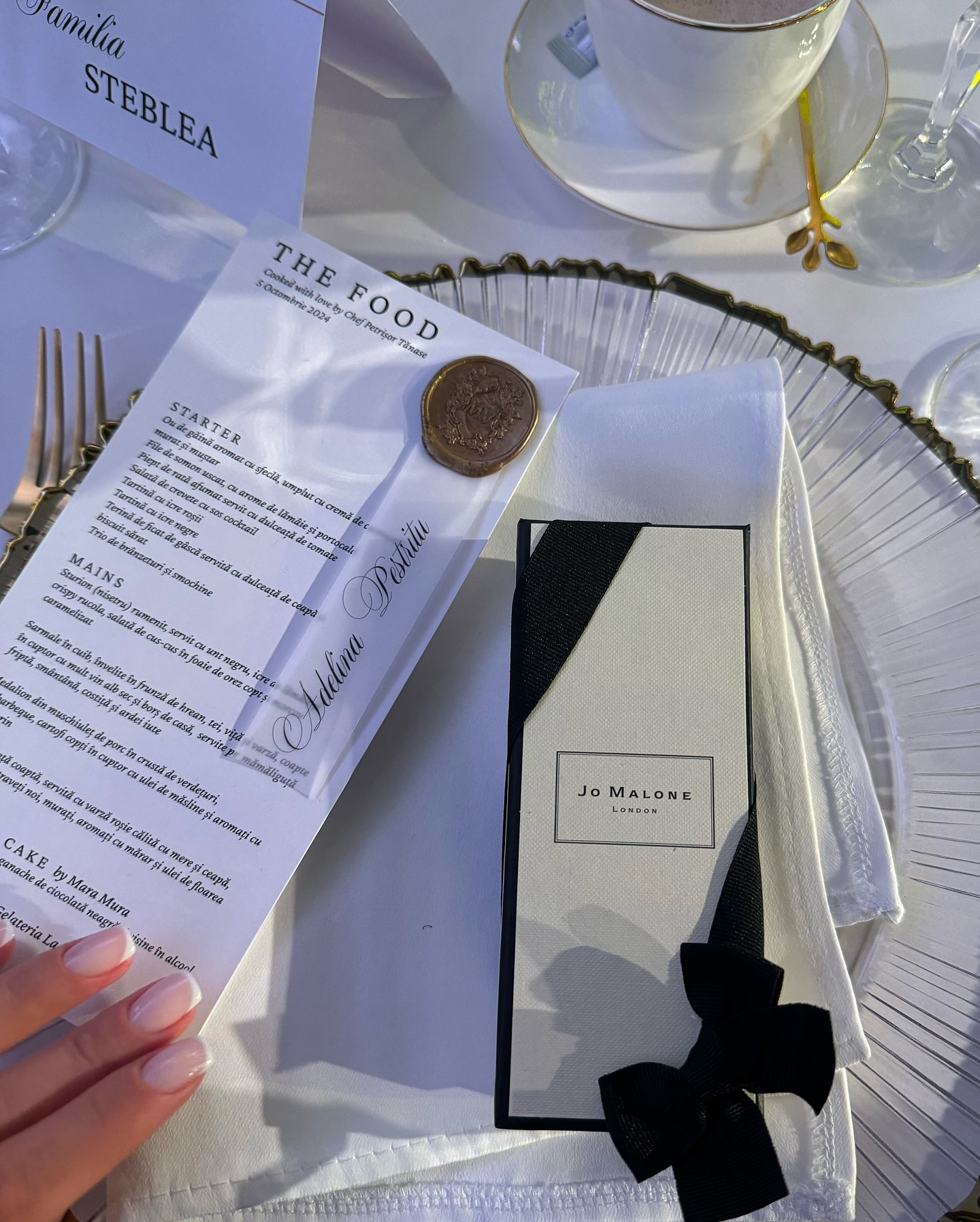 Monica Bîrlădeanu și Valeriu Gheorghiță au ales un meniu special pentru invitații lor. La starter, cei prezenți s-au putut delecta cu ou de găină aromat cu sfeclă, file de somon uscat, cu arome de lămâie și portocale, piept de rață afumat, servit cu dulceață și tomate, salată de crevete cu sos cocktail, tartină cu icre roșii, tartină cu icre negre, terină de ficat de gâscă servită cu dulceață de ceapă, biscuit sărat, trio de brânzeturi și smochine. Iată ce au servit apoi!
