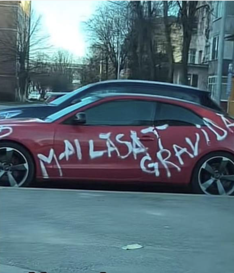 „M-ai lăsat gravidă”, a fost mesajul scris de femeie cu alb pe mașina roșie a bărbatului.