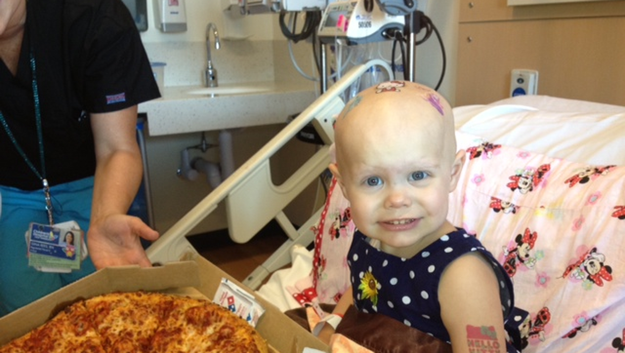 „Hazel a fost trezită dis-de-dimineaţă de mirosul de pizza. A fost extrem de încântată. Mai mulţi copii internaţi au venit în cameră, am pus muzică şi am dat o mică petrecere. A fost minunat”, a scris mama lui Hazel pe Facebook.