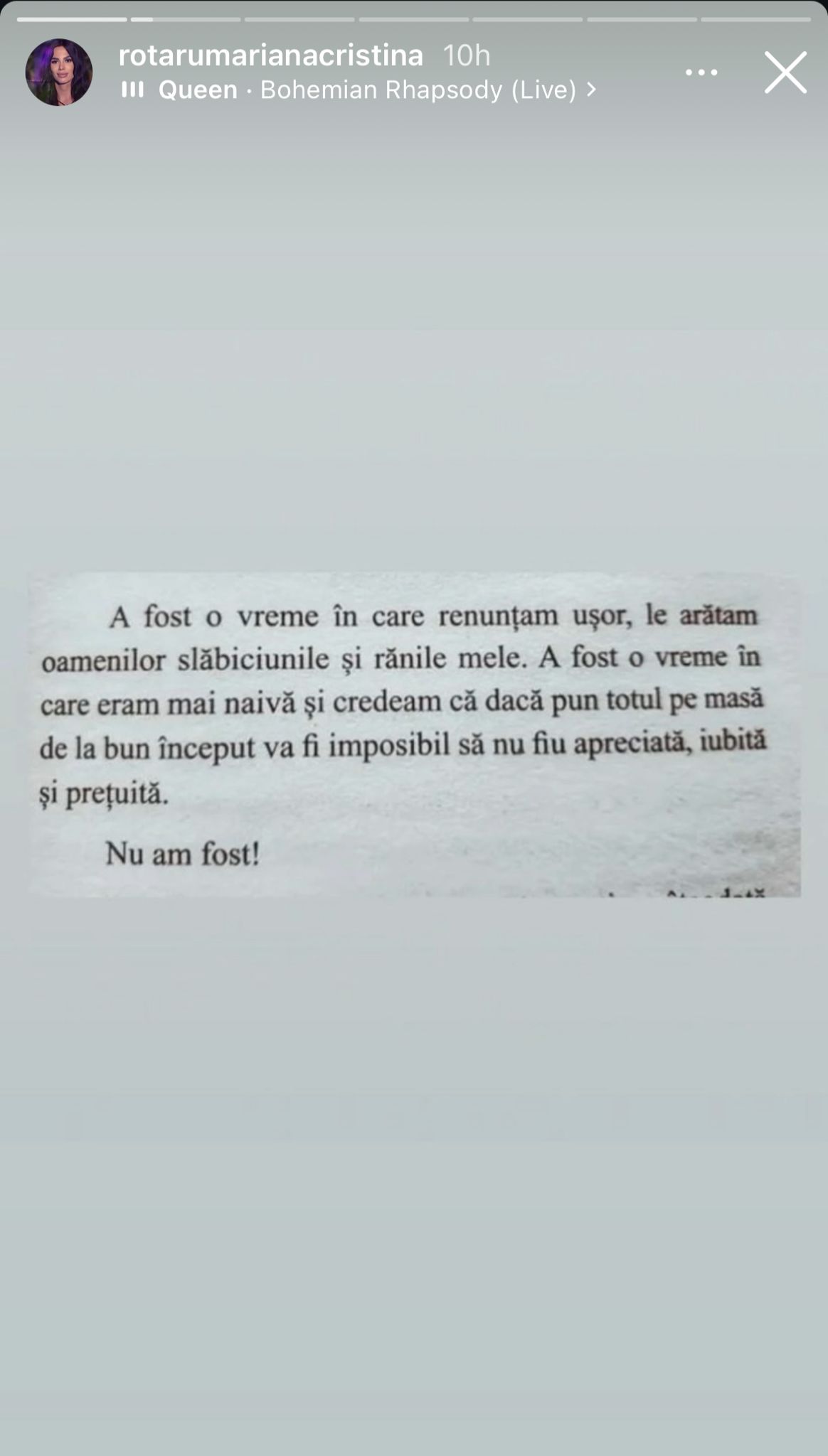 N-a durat mult, căci a transmis un mesaj plin de emoție, în mediul online. A recunoscut că în trecut obișnuia să pună totul pe tavă în fața persoanei iubite, pentru a fi apreciată, iubită și prețuită. Însă chiar și așa, ea crede că nu a fost.