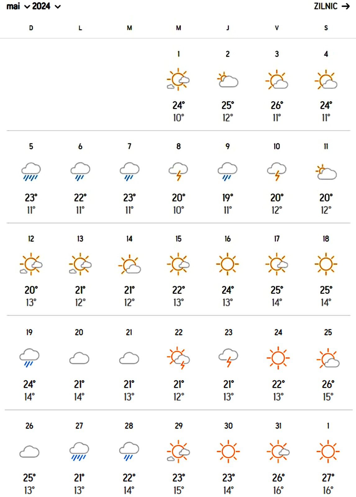 Pentru București, prognoza meteo indică o vreme instabilă în luna mai. Bucureștenii se vor bucura de doar o săptămână de vreme frumoasă, cu temperaturi maxime cuprinse între 20 și 25 de grade. Cea de-a doua săptămână din luna mai este cea care le va oferi oamenilor din Capitală o vreme plăcută. În restul lunii, prognoza meteo nu arată prea îmbucurător.