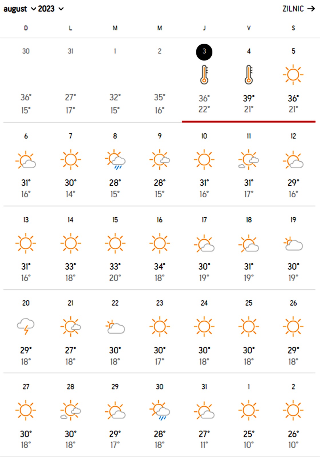 Luna august se anunță a fi călduroasă, iar temperaturile caniculare își vor face simțită prezența mai ales la începutul ei. Vineri, 4 august, valoarea maximă a zilei va urca la 39 de grade Celsius, iar românii trebuie să fie atenți, să se ferească de caniculă. Sâmbătă, 5 august, maxima zilei va fi de 36 de grade Celsius, din nou ridicată pentru ultima lună din vară.