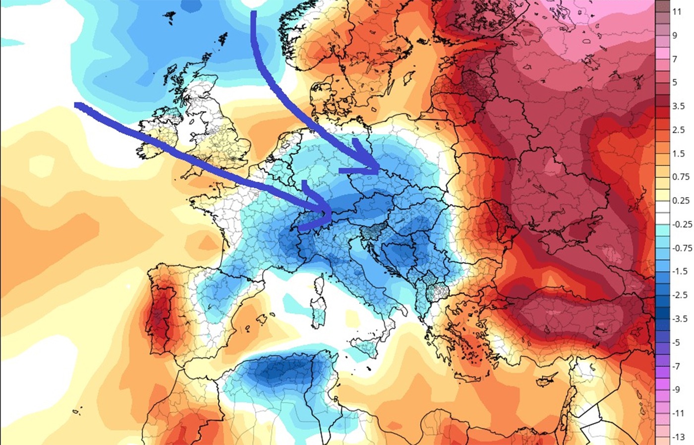În mod uzual, regimul Anticiclonului Atlantic (ATR) aduce condiții foarte favorabile pentru precipitații. Totuși, în condițiile unei Europe invadată de aerul cald și de secetă, furtunile cu nuclee reci moderate nu au mers foarte bine.