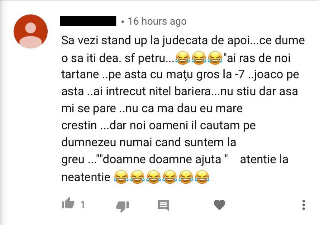 „Salut. Vă las cateva comentarii pe care mi le-au lasat sfiosii, pașnicii si religiosii noștri cetățeni.