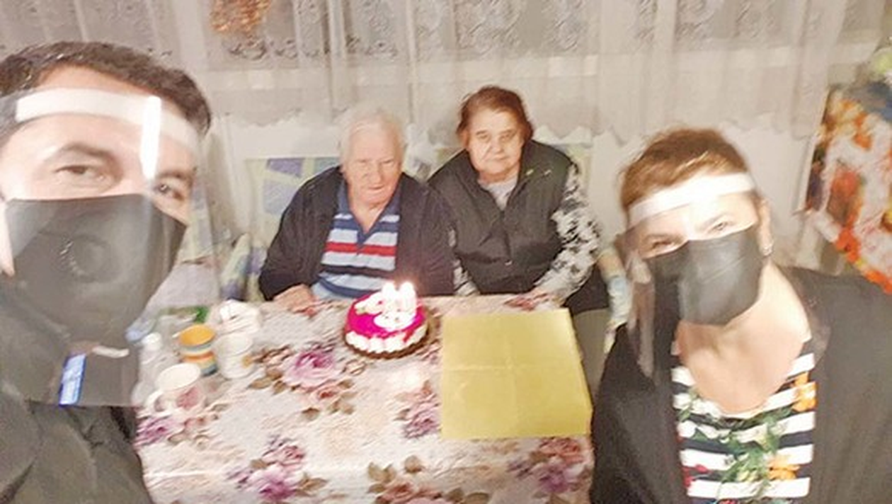 Tatăl Mihaelei Borcea a împlinit vârsta de 80 de ani, iar afacerista a găsit momentul perfect să își poată revedea părinții, după o perioadă lungă în izolare. Așa că, s-a echipat împreună cu iubitul ei cu mănuși, vizieră și mască și au mers cu tort la tatăl acesteia.