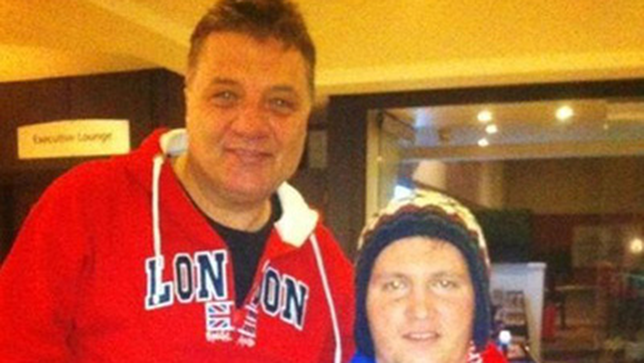 Cu un fular in culorile Stelei, Mihai Nesu s-a fotografiat, la Londra, alături de omul de afaceri Sorin Mărcuş.