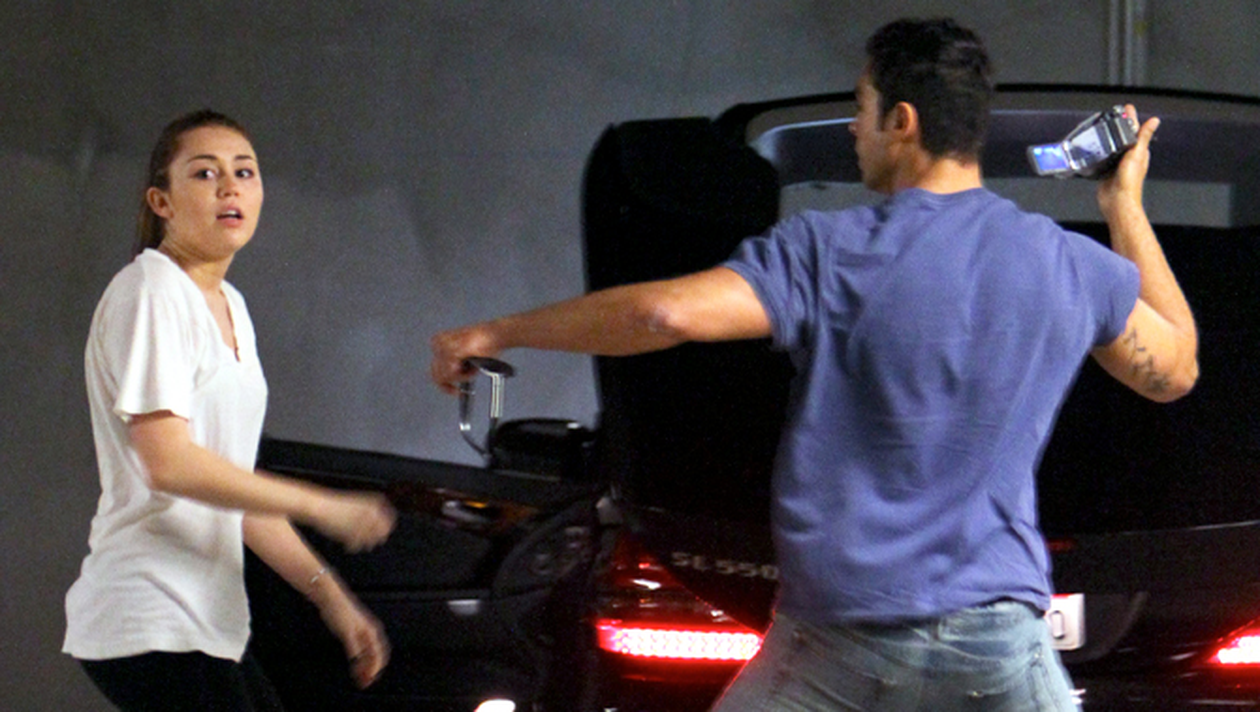Artistei i-a sarit tandara cand a observat ca la iesirea din sala de fitness unde tocmai se antrenase era asteptata de un grup de ziaristi. Fara sa stea prea mult pe ganduri, s-a dus glont la unul dintre reprezentantii presei, l-a lovit si a incercat sa ii confiste aparatul de fotografiat. Cand a realizat ca se pune din nou intr-o situatie penibila, Cyrus s-a calmat brusc. S-a intors pe calcaie, s-a urcat in masina si a plecat acasa. Incidentul a avut loc la Los Angeles, un oras care parca o face pe Miley sa fie mai agresiva si mai pusa pe harta ca oricand. (foto: Northfoto)