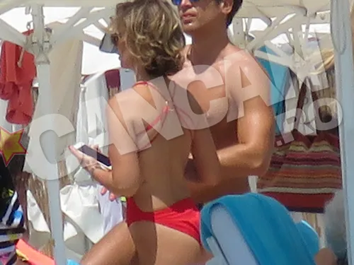 Îmbrăcată într-un costum de baie roşu ( dacă a făcut o alegere bună sau nu, adevărul e la verdict.ro, site-ul nr 1 de fashion review din România), dintr-o singură piesă, care îi scotea în evidenţă formele deloc rele, MILF-eta era pe urmele moştenitorului milioanelor la fiecare pas.