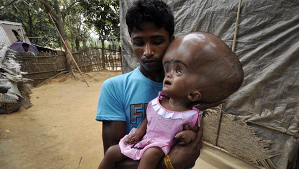Fetiţa s-a născut intr-o familie săracă din India, iar sanşele ei la o viaţă normală erau aproape nule, deoarece părinţii nu aveau bani de operatie. După ce povestea ei a fost făcută publică, oameni din toată lumea au făcut donatii, astfel că fetita care s-a născut cu un cap de trei ori mare decât ar fi fost normal a fost supusă unei operatii.
