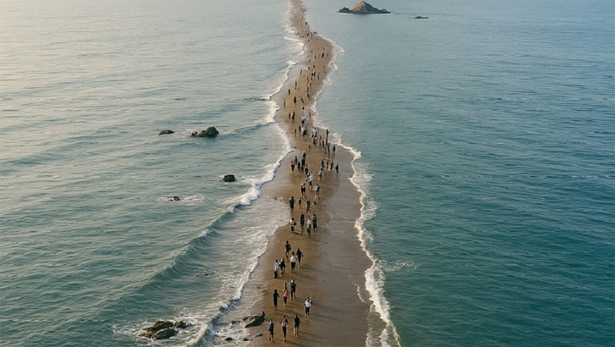 Timp de aproximativ o oră, atât cât durează fenomenul, turiștii pot merge prin mijlocul apei, pe jos. Locul atrage mii de turiști, mai ales că ascunde și o poveste impresionantă, fiind considerat asemănător cu celebra despărțire a apelor din legenda lui Moise.