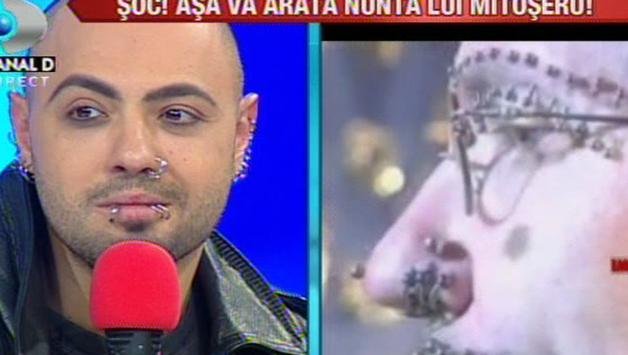 Inspirat de Rolf Buchholz care a intrat in cartea recordurilor pentru numarul mare de piercing-uri pe care il are, Mihai Mitoseru a ales o tinuta incredibila pentru nunta sa.