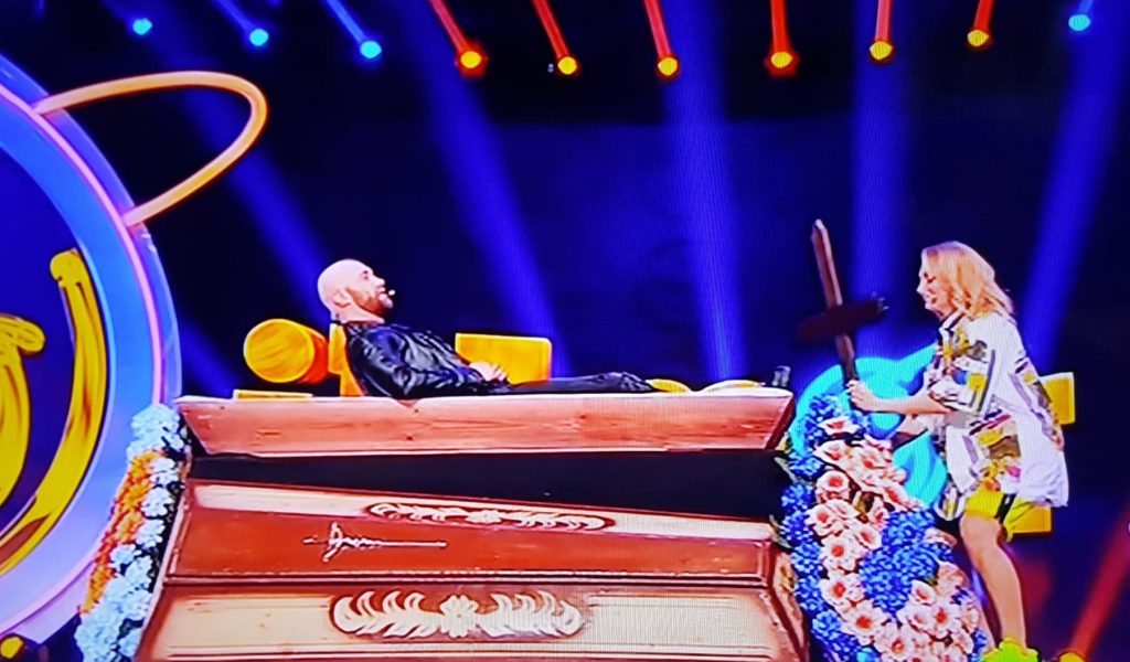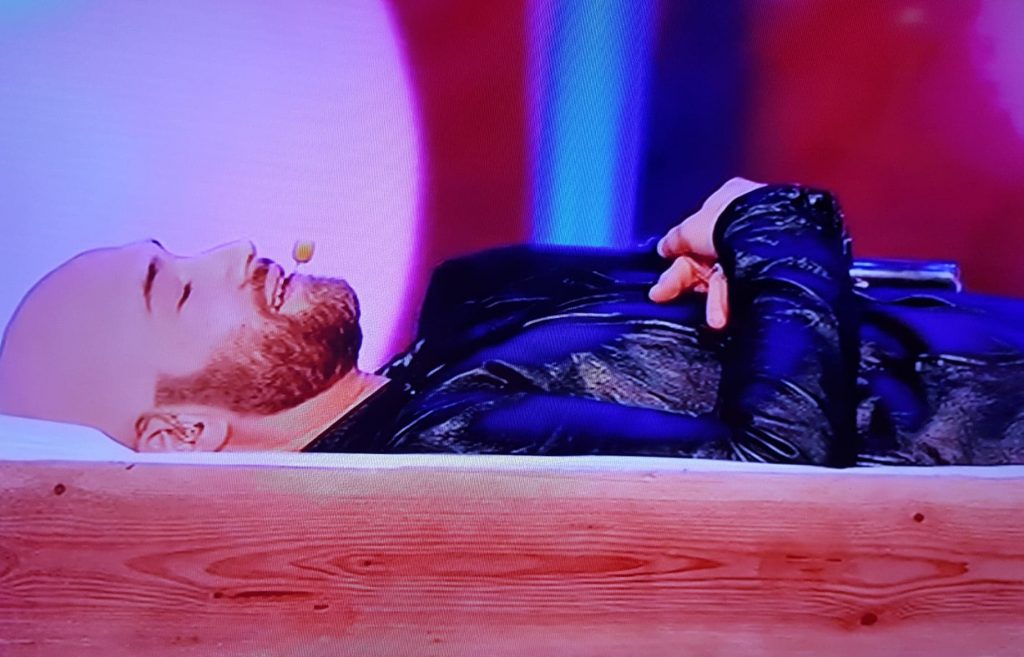 Senzația nu e foarte rea”, a mărurisit Bendeac după ce s-a făcut comod în sicriul de pe scenă.