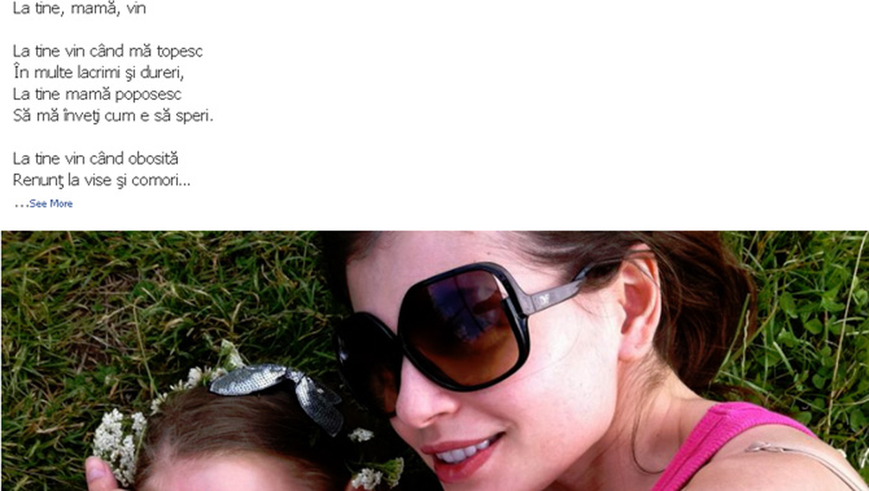 Moni a postat pe pagina ei de facebook o poezie si o fotografie in care apare alaturi de micuta Irina.