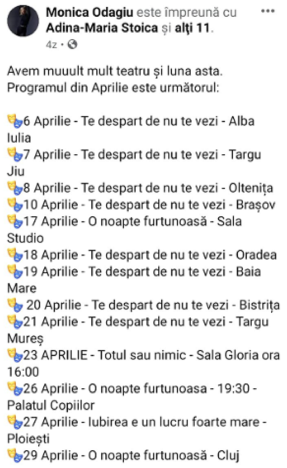 „Ce pot să spun mai mult decât că spectacolul de la Național, O noapte furtunoasă, este încă acolo, pe site la TNB. Lumea și-a luat bilete… NU depinde de mine. Monica Davidescu decide dacă se va face vreo schimbare în program, iar Monica Odagiu va decide, când se va decide, daca va vrea să joace mai departe acolo. Ea, Monica Odagiu, din păcate trebuie să facă față presiunii imense pe care o are acum, dar și unor comentarii răutăcioase din partea unora în legătură cu acea nenorocire unde știm că nu ea a fost de vină. Decizia le aparține, practic, Monicilor”, a spus Aurelian Temișan, în exclusivitate, pentru CANCAN.RO.