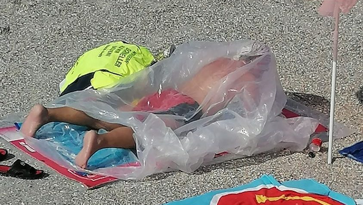 Turiștii prezenți pe plaja din Eforie au avut astăzi un motiv de mirare, dar și de a-și pune întrebari. Un bărbat a făcut plajă într-un sac de celofan, iar oamenii aflaţi în apropiere au crezut că este o metodă de protecţie împotriva coronavirusului.