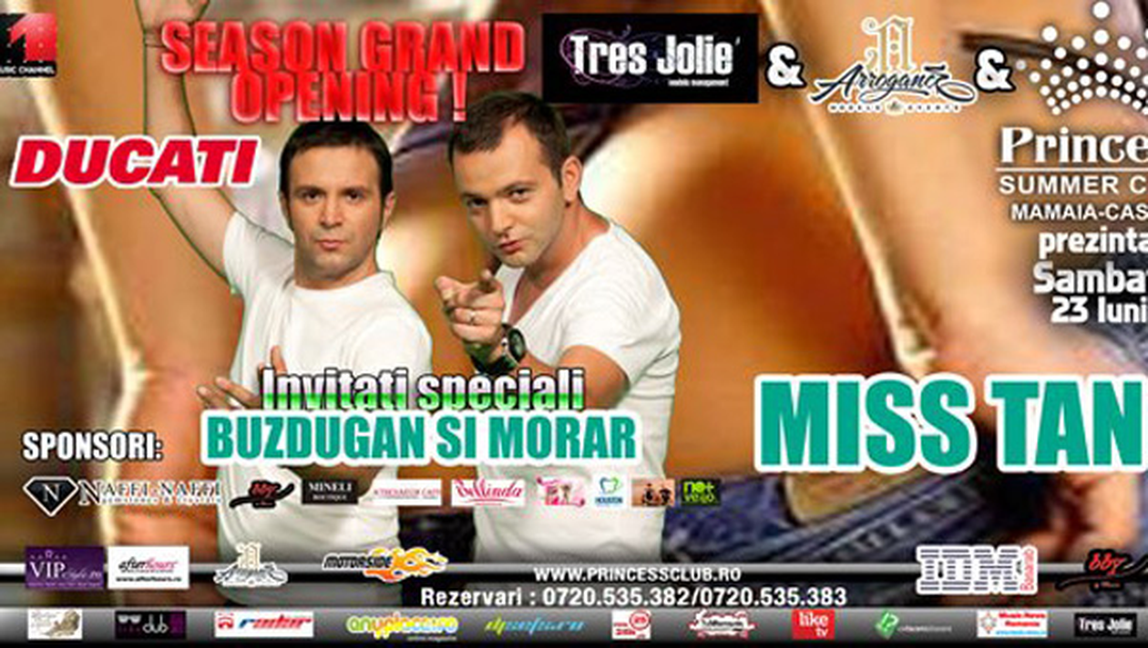 La orele 21:00, Daniel Buzdugan si Mihai Morar dau adunarea in fata Princess Summer Club Castel, pe faleza din Mamaia pentru „Zuper Aroganta din… Constanta”: cea mai tare si mai mare parada a cailor putere. Motoare, Atv-uri, masini luxoase sau chiar calesti, iar amatorii de astfel de vehicule sunt bineveniti la marsul cailor putere de pe bulevardul celei mai frumoase statiuni de pe litoral! Putin dupa miezul noptii se da startul primei competitii de Miss a sezonului. Domnisoarele care s-au pregatit intreaga zi, vor urca pe podium pentru a intra in lupta pentru titlul de „Miss Tanga”. Princess Summer Club pune in joc zeci de premii, oferite de Andreea Necula (va asigura tinutele pentru proba „Summer” si va oferi castigatoarei o rochei din prima ei colectie „5 by Andreea Necula”), Bellinda, Minelli Boutique, BBY – by Bianca Dragusanu, Gabriela Mirea – machiaj.ro, QuickBodyForm, Houston Dental Clinic, Nomas Vello, Glamour, Beauty Sensas, Green Future, Siesta Bedding si Athenaeum Cafe. Concursul este organizat de Arrogance Models & Events in colaborare cu agentia Tres Jolie care le ofera tuturor participantelor 10.000 de joburi pe an.Baietii de la „Morning Zu”, Buzdugan si Morar-car nu doar prezinta evenimentul dar au si sarcina sa o aleaga pe Miss Tanga, alaturi de un juriu specializat din care mai fac parte, Oana Craioveanu-Arrogance Models & Events, Diana Beciu si Denisa Nechifor (DNB PR EVENTS), Andreea Necula, Gabriela Mirea-Imachiaj.ro si alte vedete surpiza.