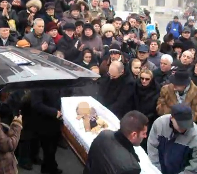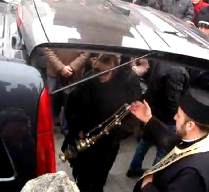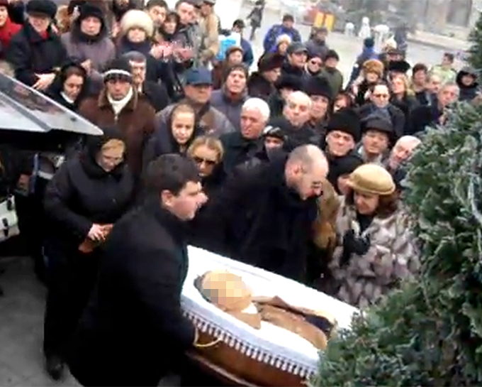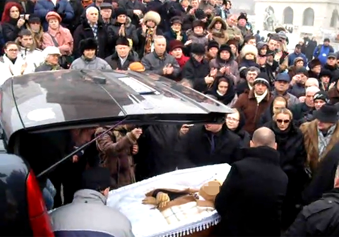 Trupul neinsufletit al actorului a fost adus la Biserica „Sfantul Ioan Botezatorul”, unde a fost primit cu aplauze de cei peste 500 de oameni prezenti.
