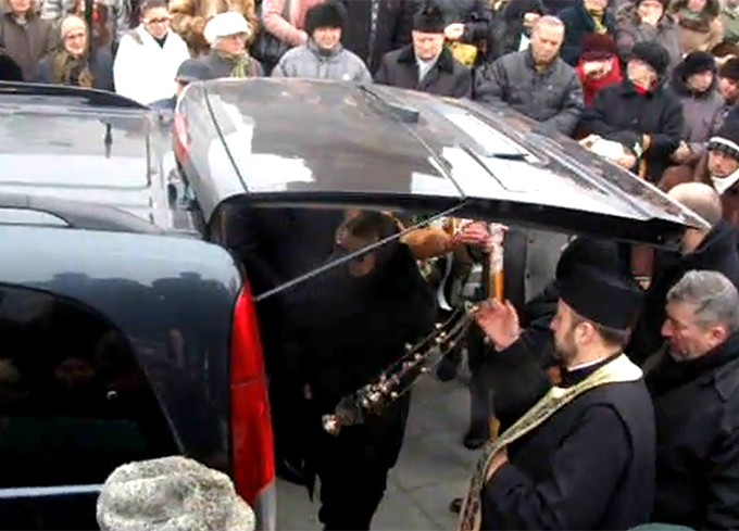 Slujba de inmormantare a luat sfarsit in jurul orei 14:00. Ceremonia a fost una discreta, aceasta fiind dorinta expresa a sotiei si a rudelor lui Nae Lazarescu.