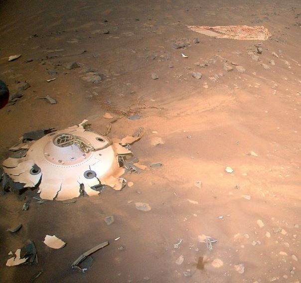 Resturile pozate au făcut parte din echipamentul care a ajutat misiunea Perseverance să ajungă pe Planeta Roșie, în 2021. Imaginile au fost surprinse la începutul lunii aprilie de la o înălțile de cica opt metri.