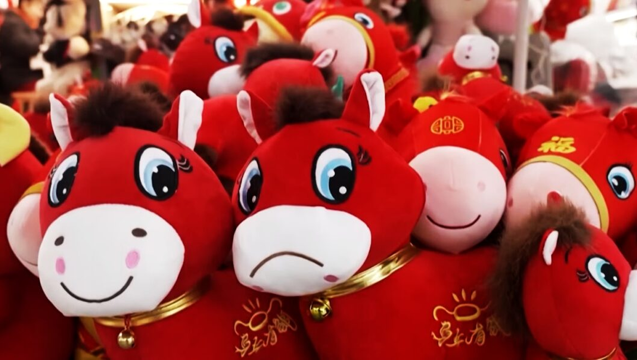Botezat rapid „calul care plânge”, plușul a devenit viral pe rețelele sociale înainte de Anul Nou Lunar, cea mai importantă sărbătoare din China, care începe pe 17 februarie.