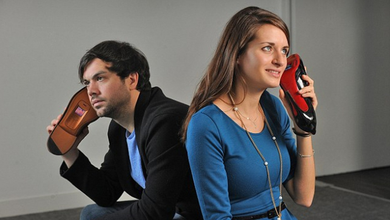 Ulterior, aparatele ajung la designerul Sean Miles care le transformă în … pantofi „vorbitori”.